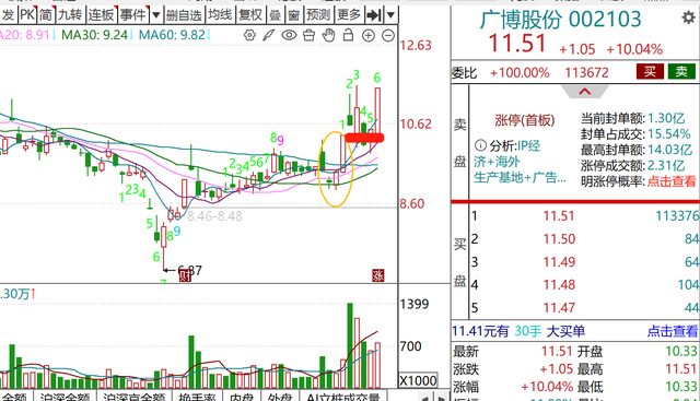 所以从退潮期到混沌期,本质上交易情绪叠加了端午节前效应的不确定性担忧。包括周一高潮的可控核聚变,周二其实也没有给强溢价。反倒是首发经济、新质消费、IP经济在本周做了逐步增强,而这个思路上还是我们上周提到的“低位补涨”的基本逻辑,就是想要卡位退潮的资金,广博GF这里的上板本质上也印证了这一点,叠加断板加强的空间,在京华JG走出高度之后做的跟随。